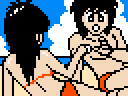 pixelated Agent Mary and the pixelated man of action known only as BANG